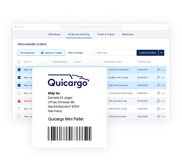 Save time on your most frustrating process: shipping! Connect your online store to Sendcloud and Quicargo and start shipping more efficiently.