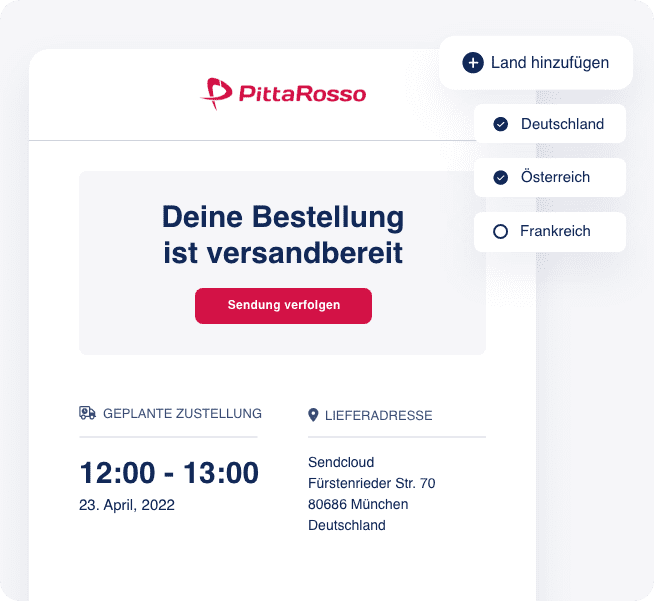 Versende automatische Lieferupdates per E-Mail und SMS, um deine gesamte Customer Journey verbessern.