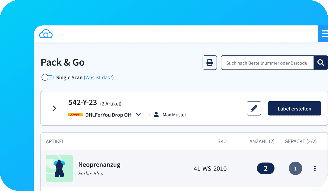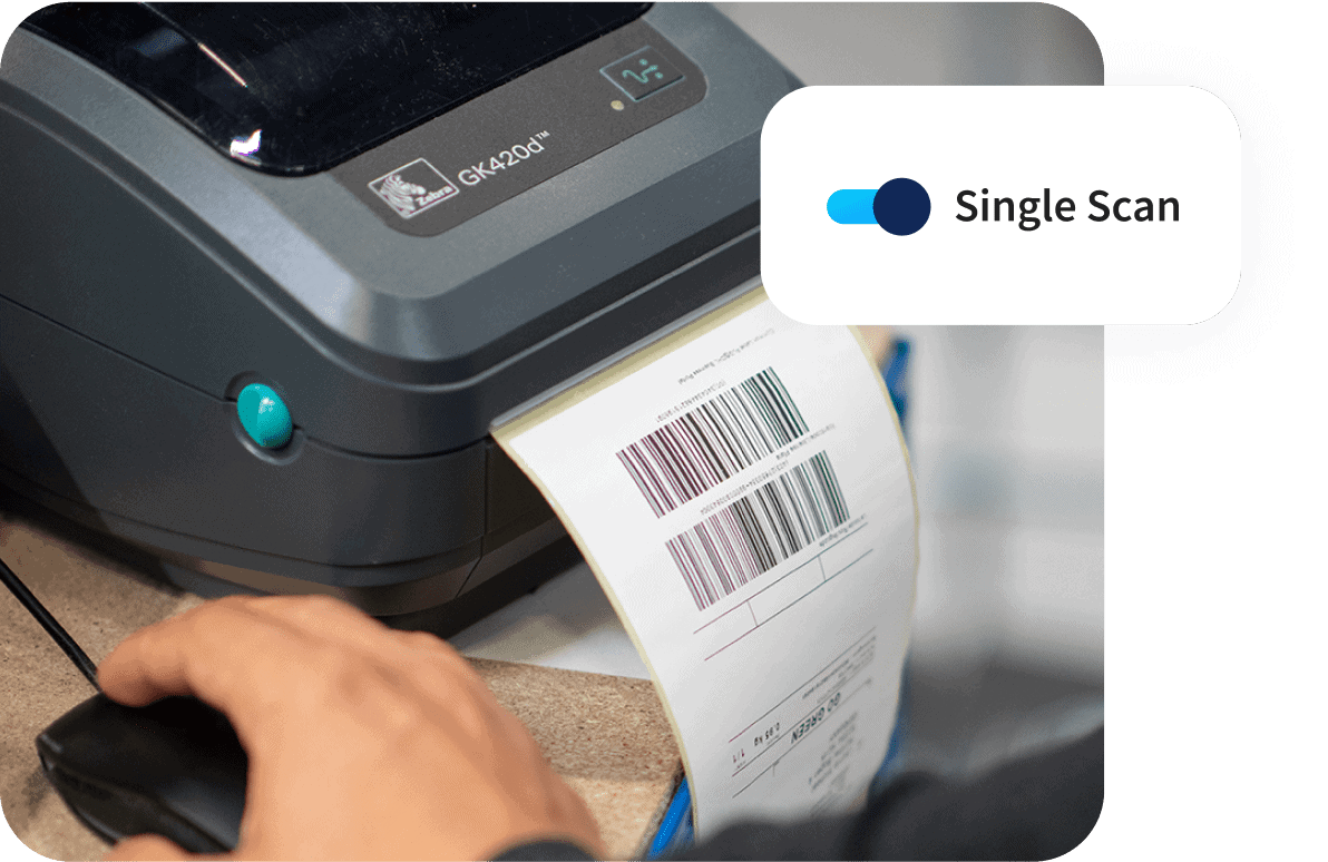 Dank Single-Scan kannst du Versandlabels mit nur einem Scan drucken. Spar dir die unzähligen Schritte eines herkömmlichen WMS – einfach scannen und loslegen!