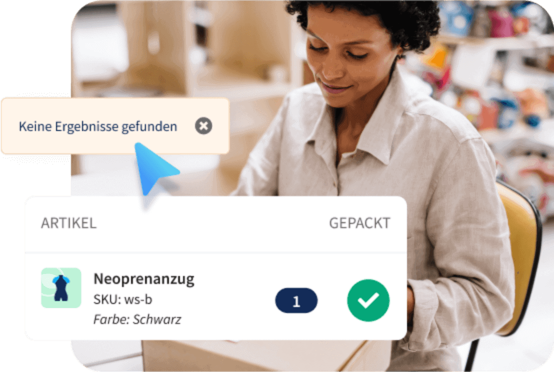 Integriere Pack & Go umgehend in die Workflows deiner Teams. Im Gegensatz zu einem vollständigen WMS gibt es keine langen Implementierungsphasen oder hohen Anfangskosten.