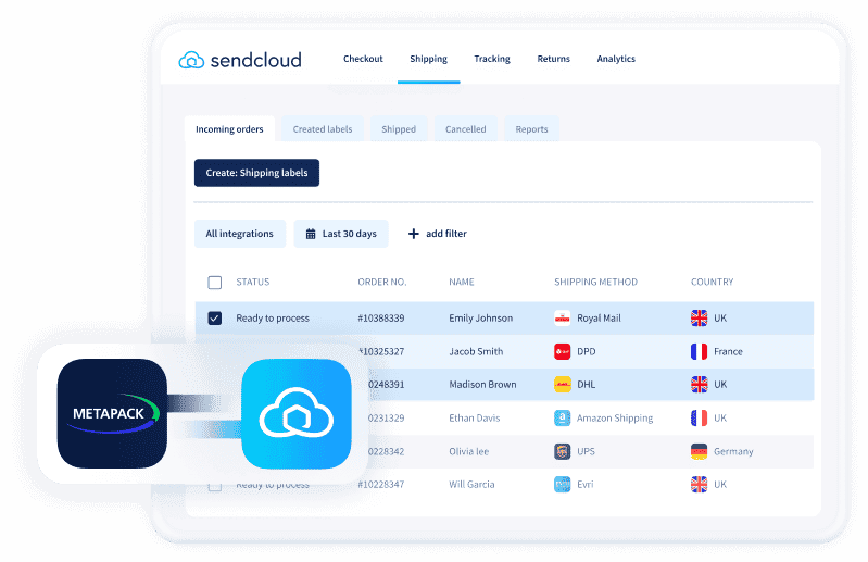 Automate label creation, tracking emails, returns, and more with Sendcloud. Reach customers globally, and improve their delivery experience, from checkout to returns.