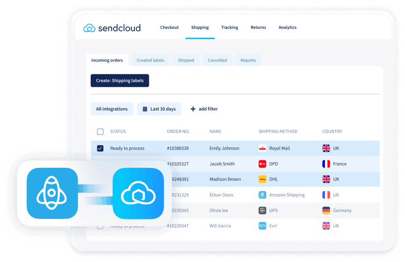 Automate label creation, tracking emails, returns, and more with Sendcloud. Reach customers globally, and improve their delivery experience, from checkout to returns.