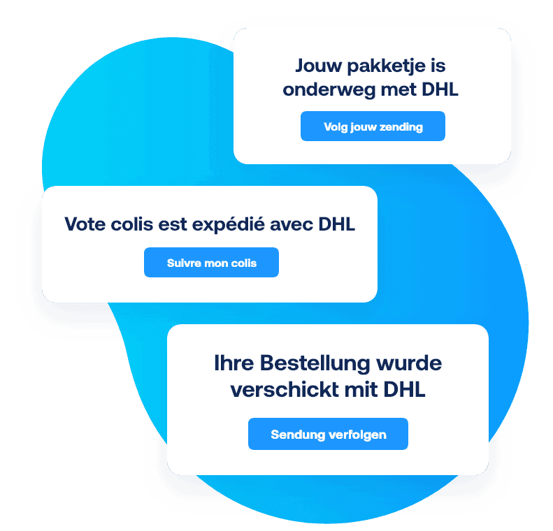 Send automatic delivery updates via email and SMS that improve the overall customer journey. Plus, drive cross-sales for your online store—all automatically in your customer’s local language.