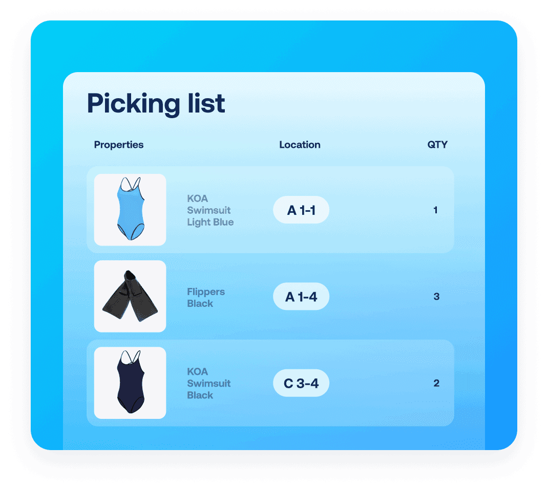 Automatically sort picking lists based on item location to find your way around the warehouse more easily.