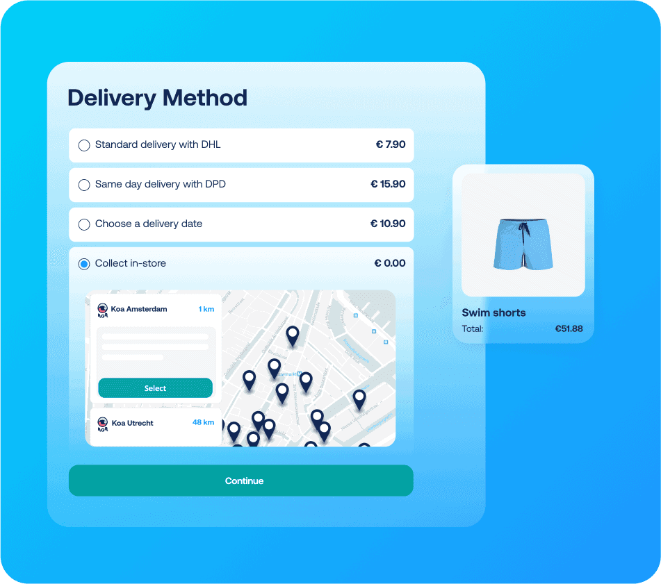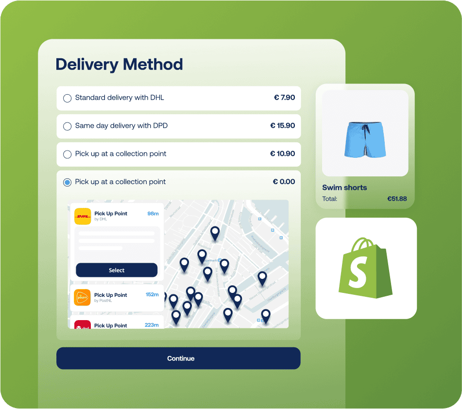 Upload your store locations to Sendcloud and let customers pick up orders at their preferred store for a more flexible checkout experience.