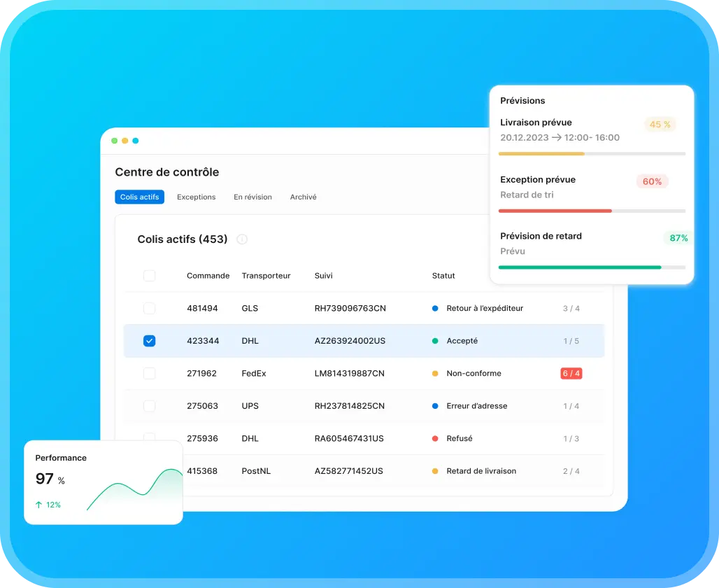 Accédez à toutes les données importantes, des délais de livraison aux taux de retour, au même endroit. Utilisez ces informations pour améliorer vos opérations et mieux répondre aux attentes de vos clients.