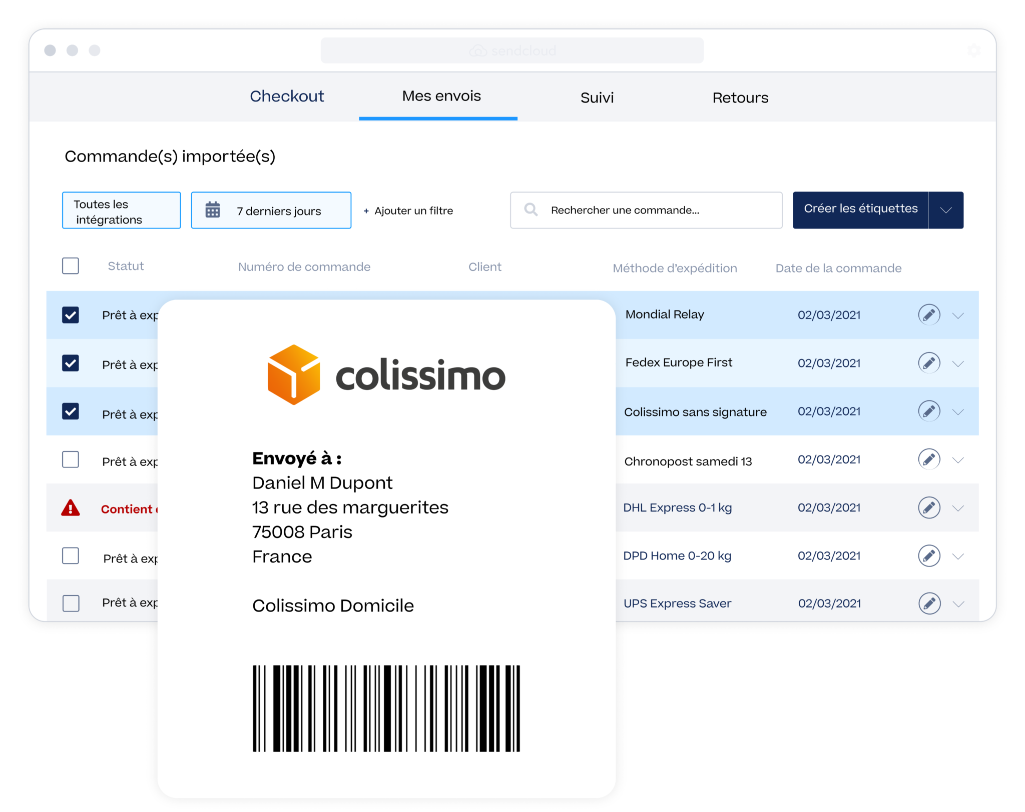 - Connectez votre checkout avec Sendcloud pour gagner du temps dans la création d’étiquettes.