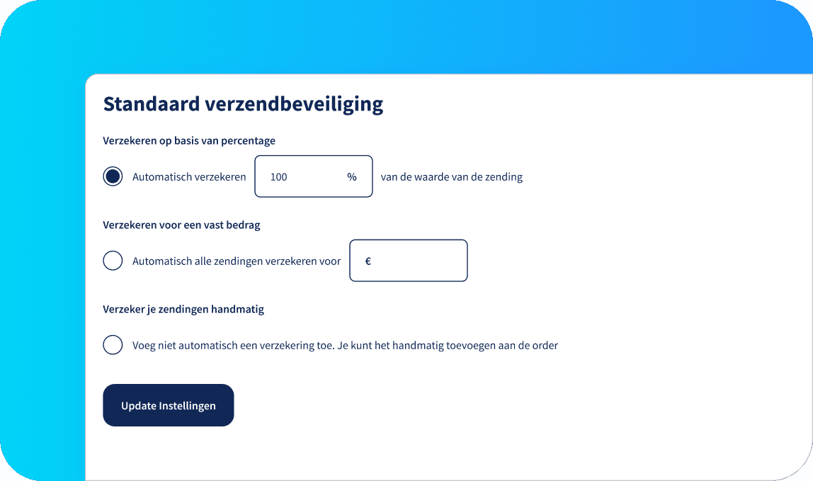 Kies ervoor al je pakketten standaard te verzekeren door Shipment Protection powered by XCover te selecteren.